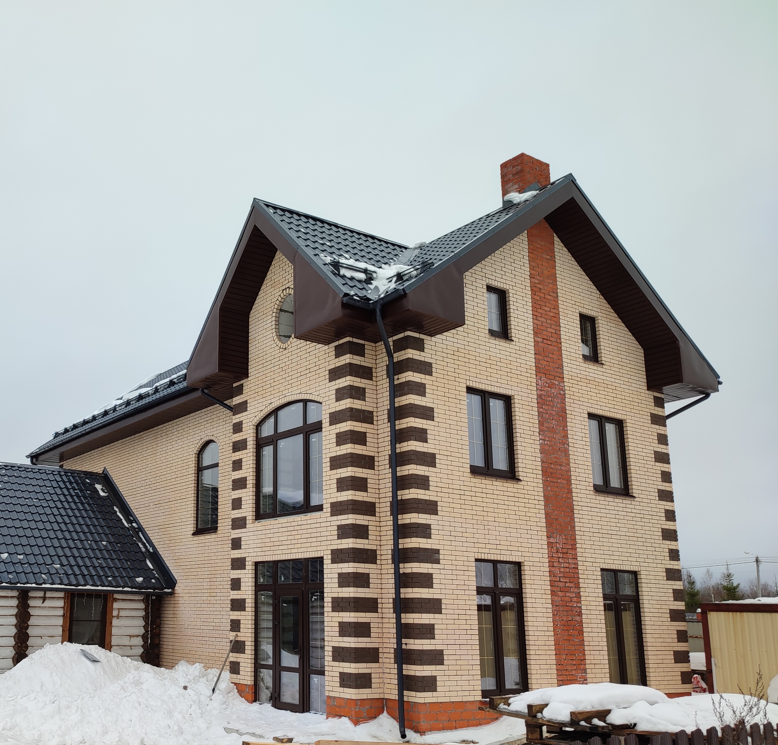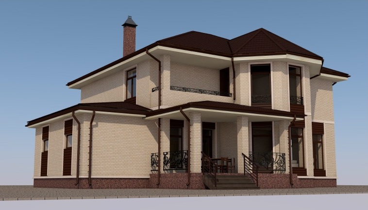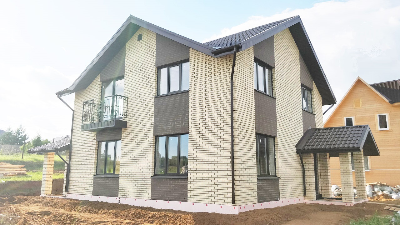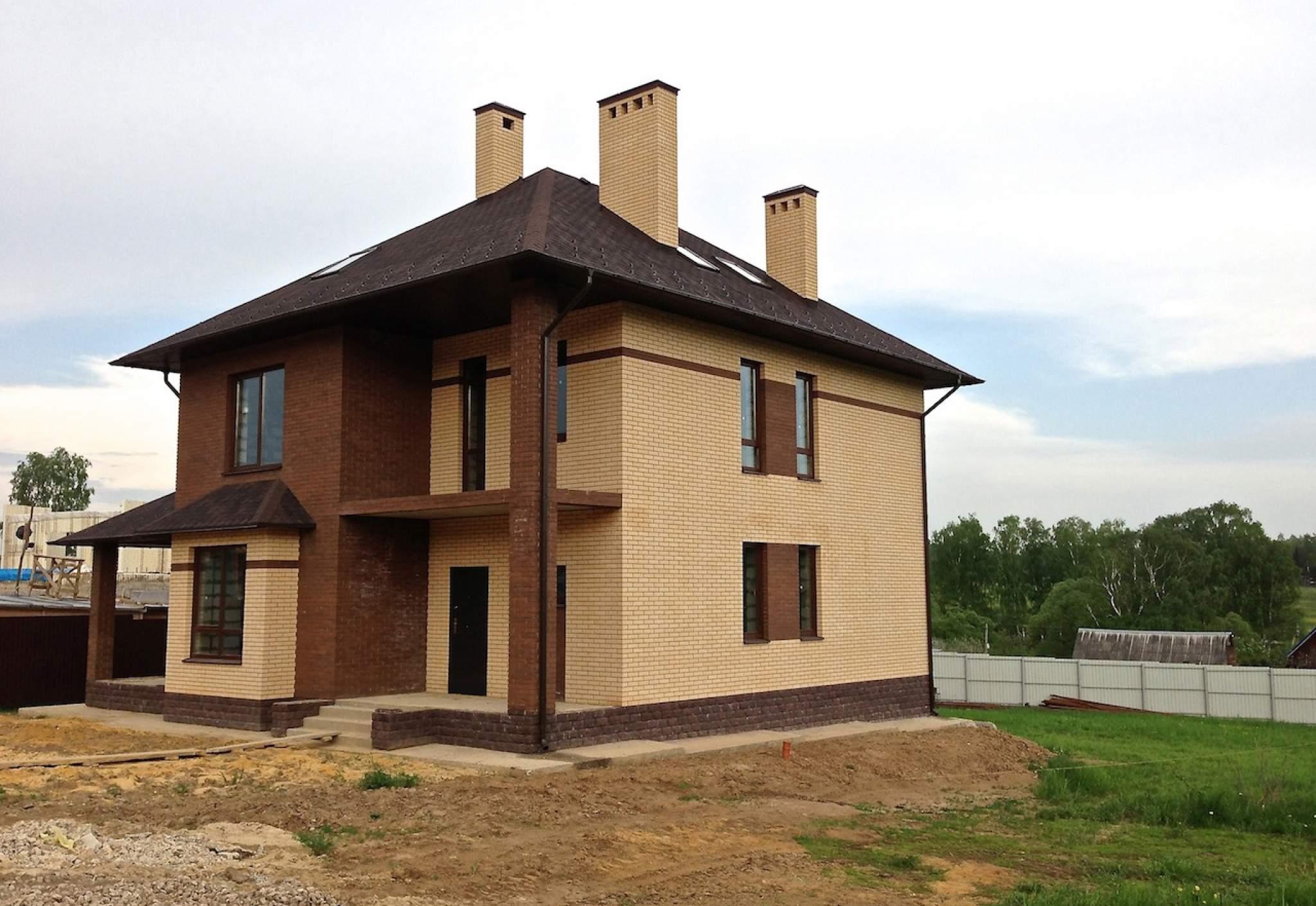 Фасад облицовочный кирпич песчаного и шоколадного цвета..