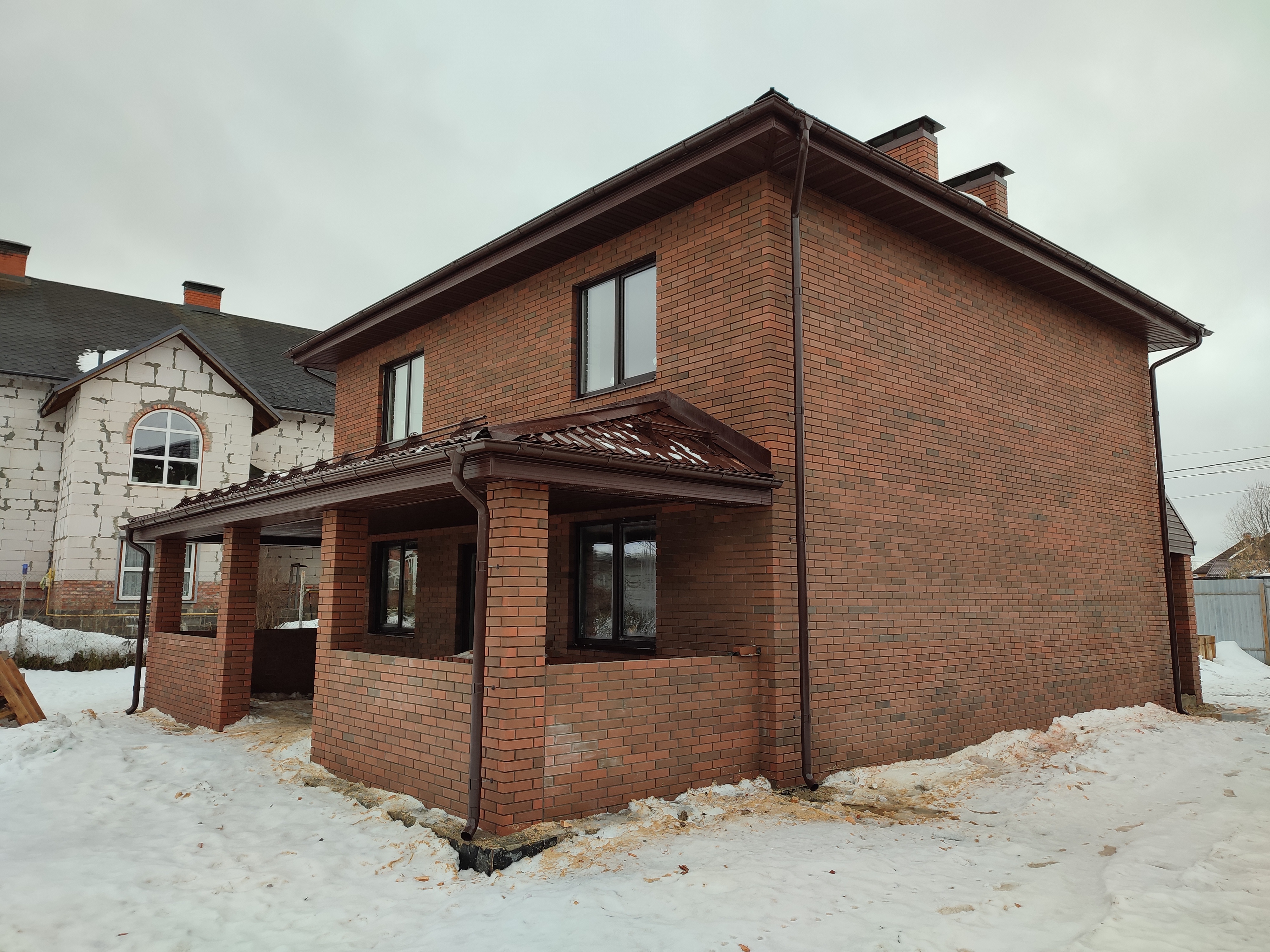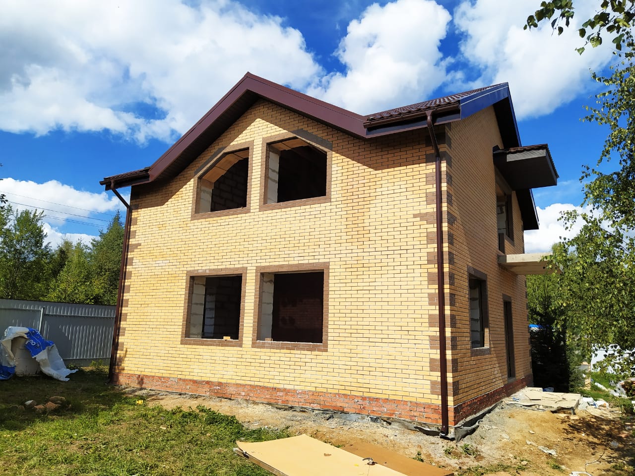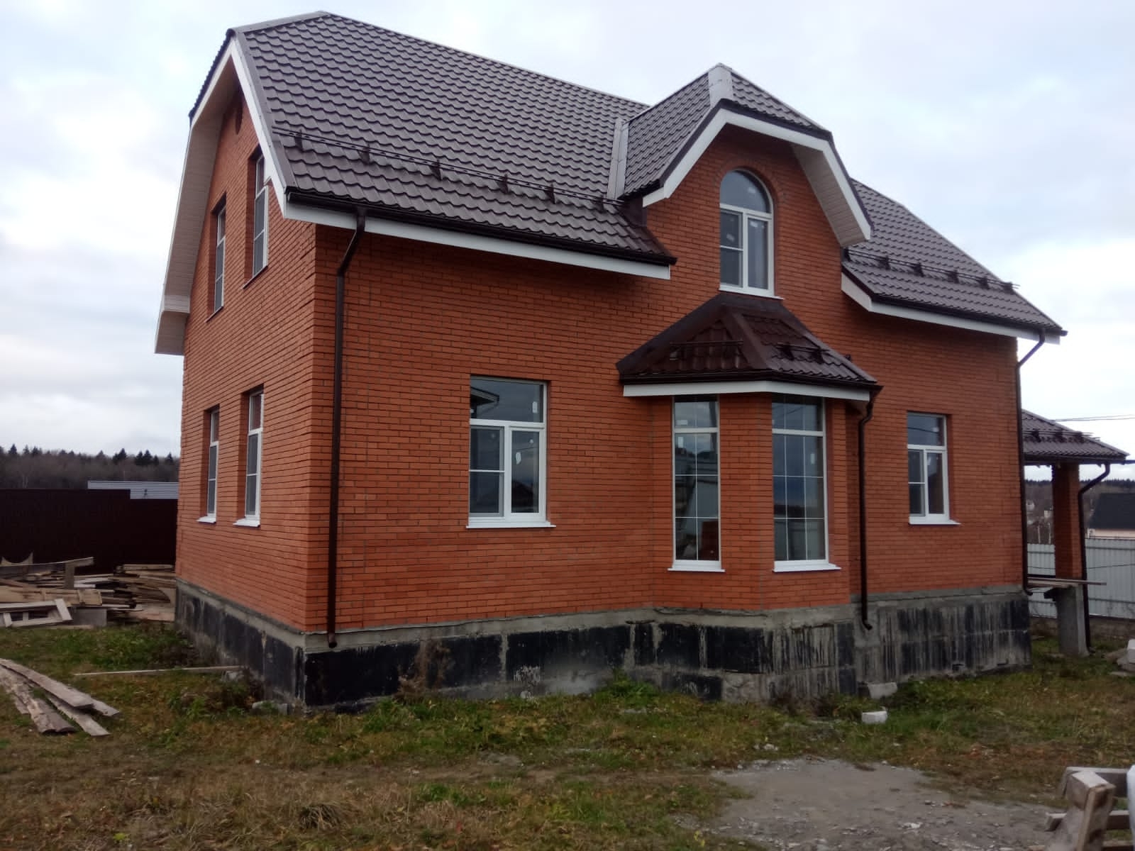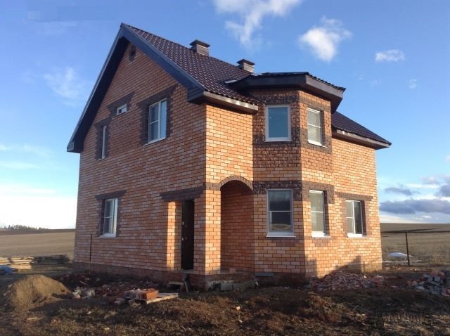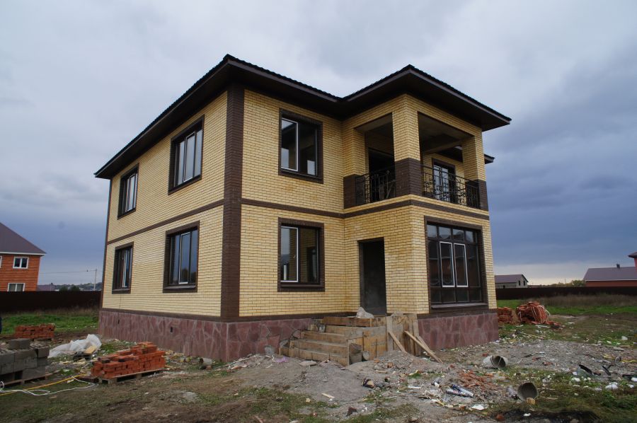 Облицовка дома кирпичом. Облицовочная кладка была сделана на уже возведенные ранее стены их газоблока.