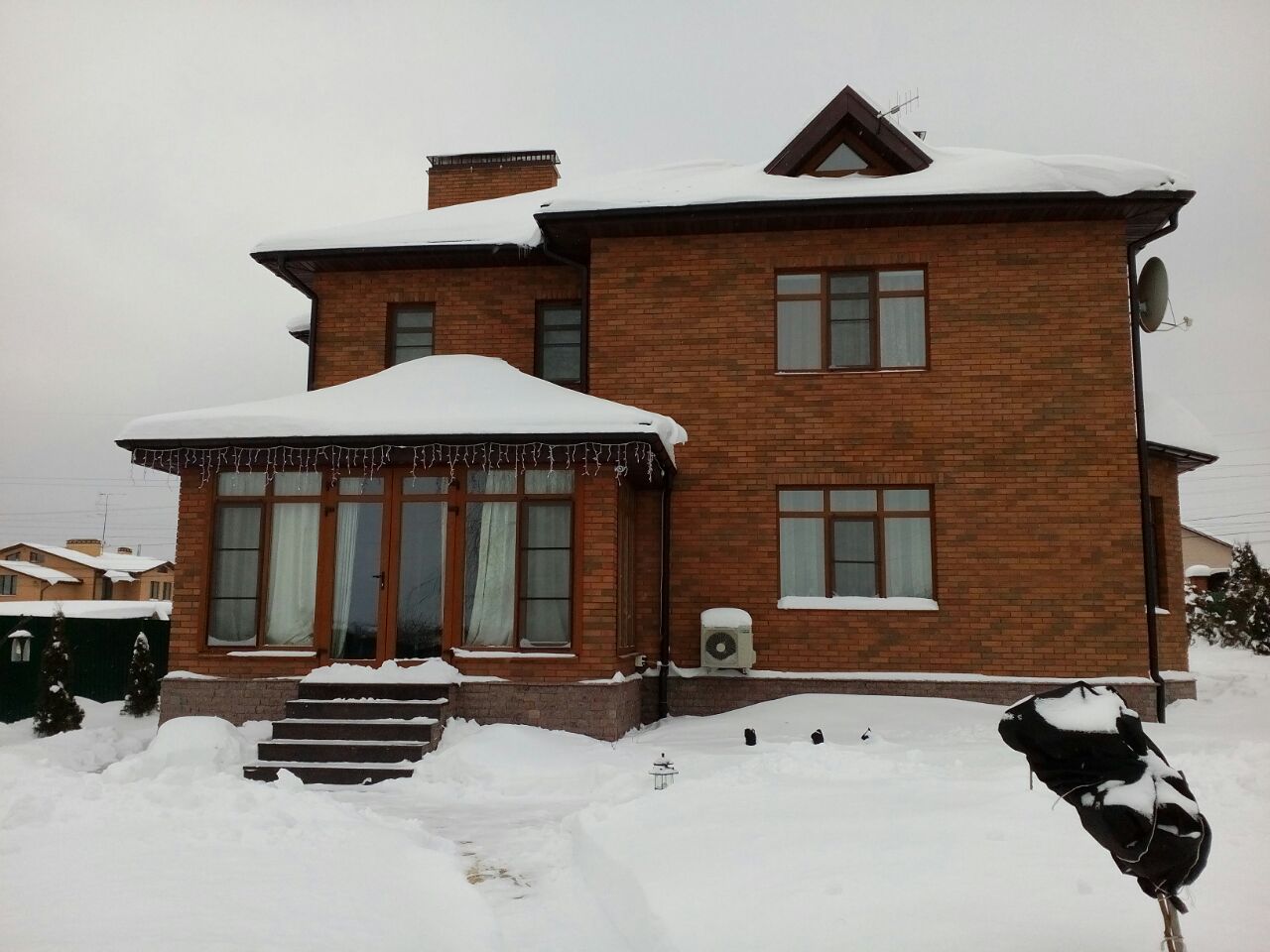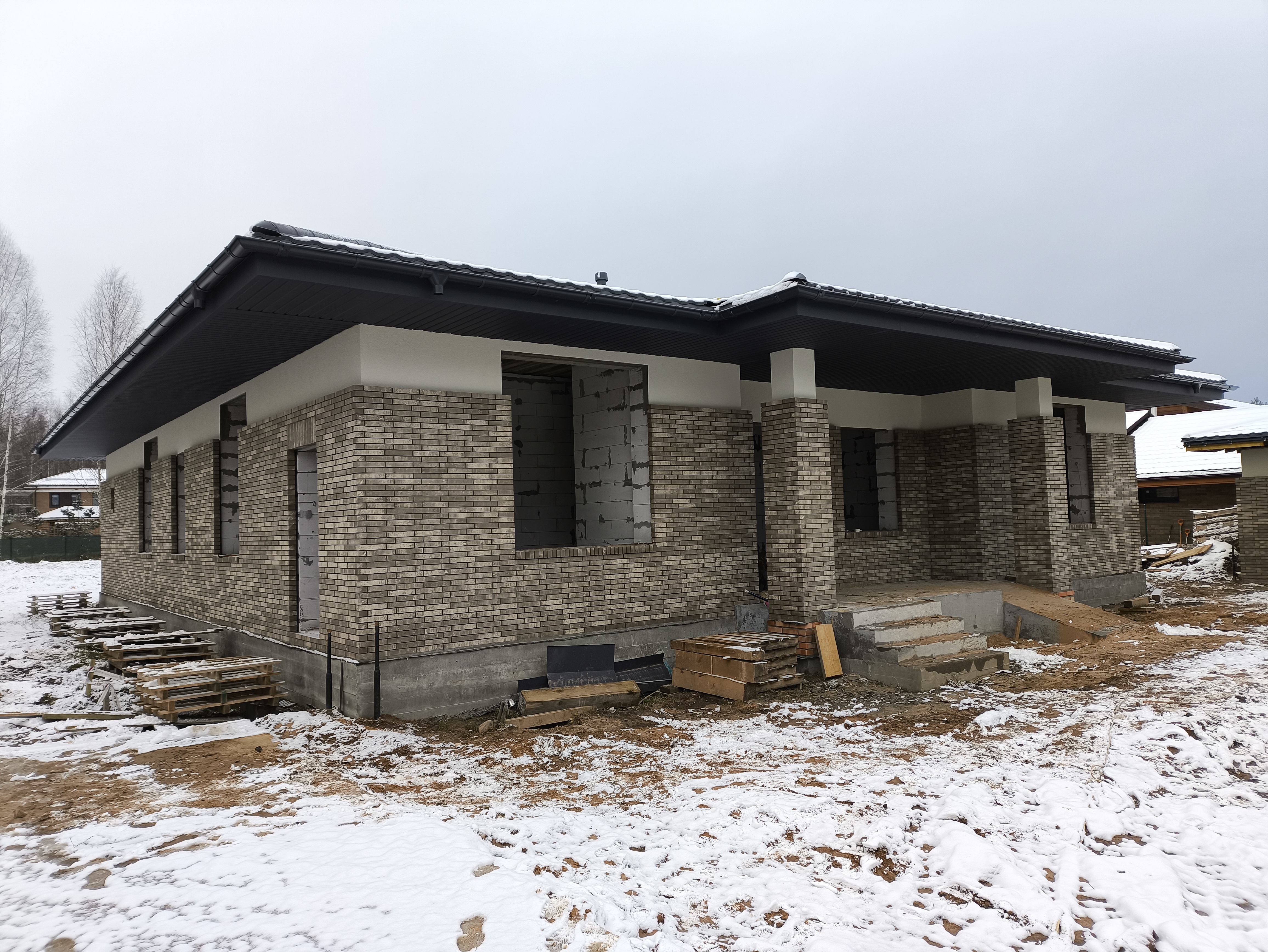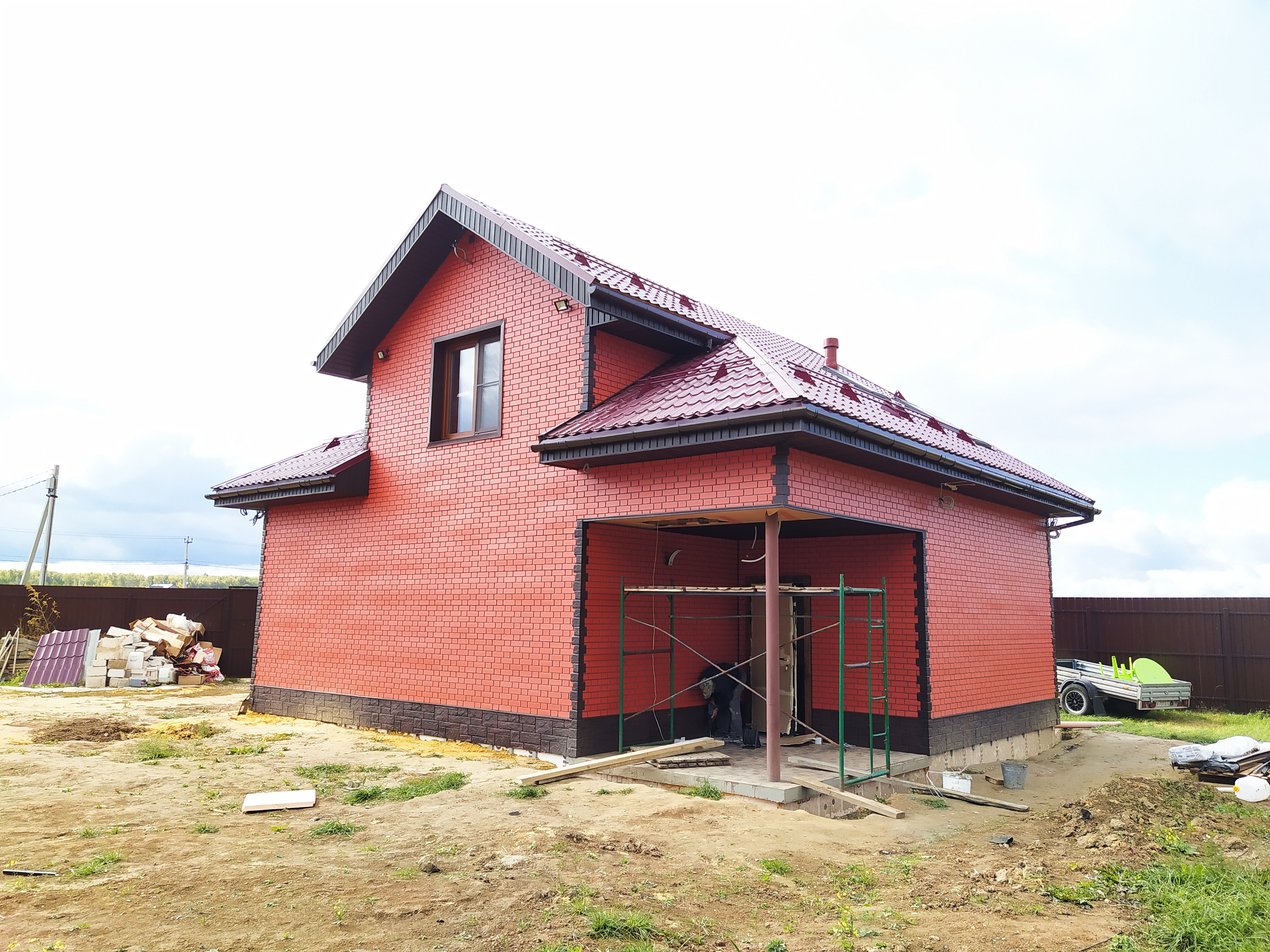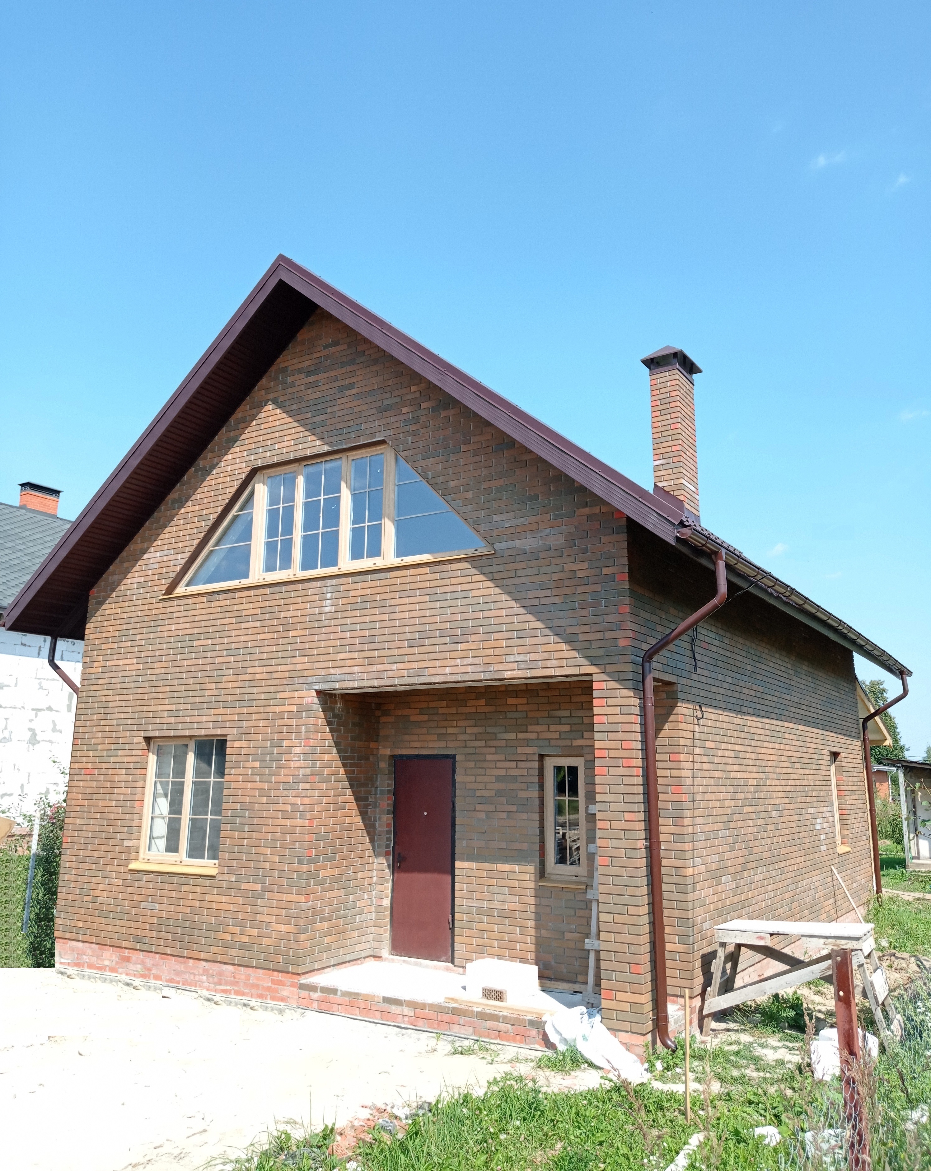 Облицовка дома кирпичом. Облицовочная кладка была сделана на уже возведенные ранее стены их газоблока.