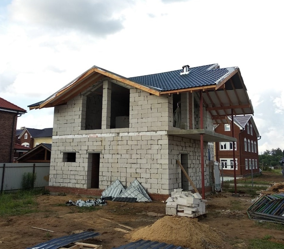 Коробка дома газоблок или керамические блоки.