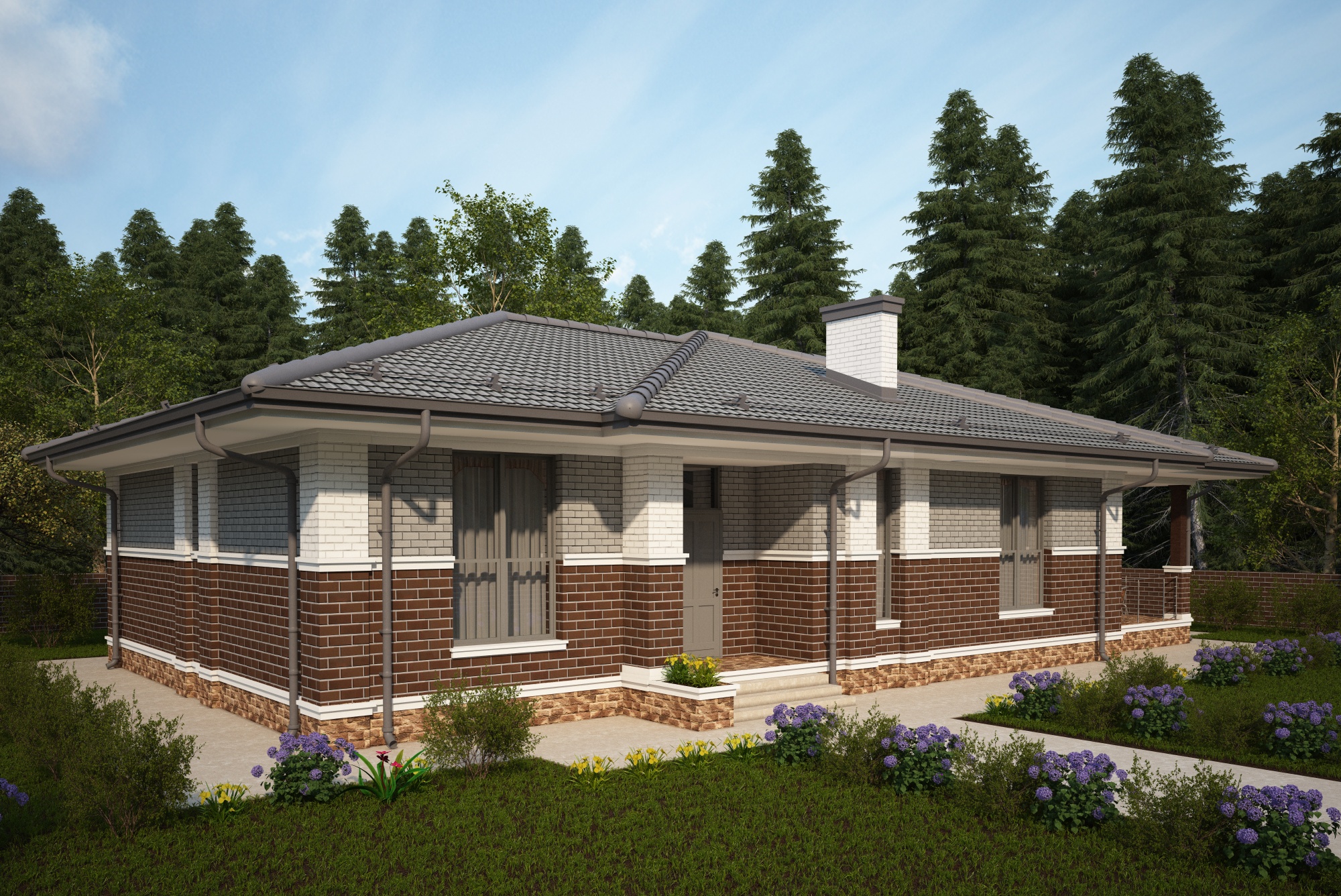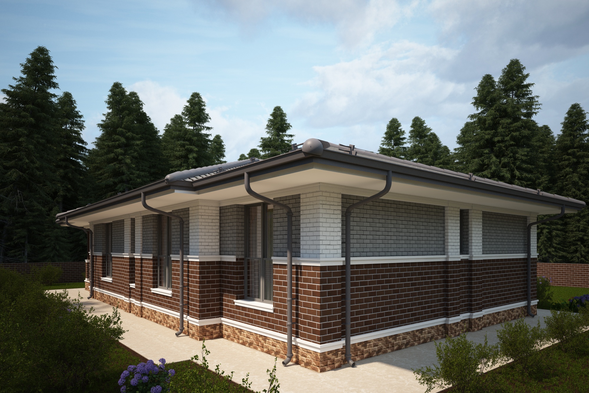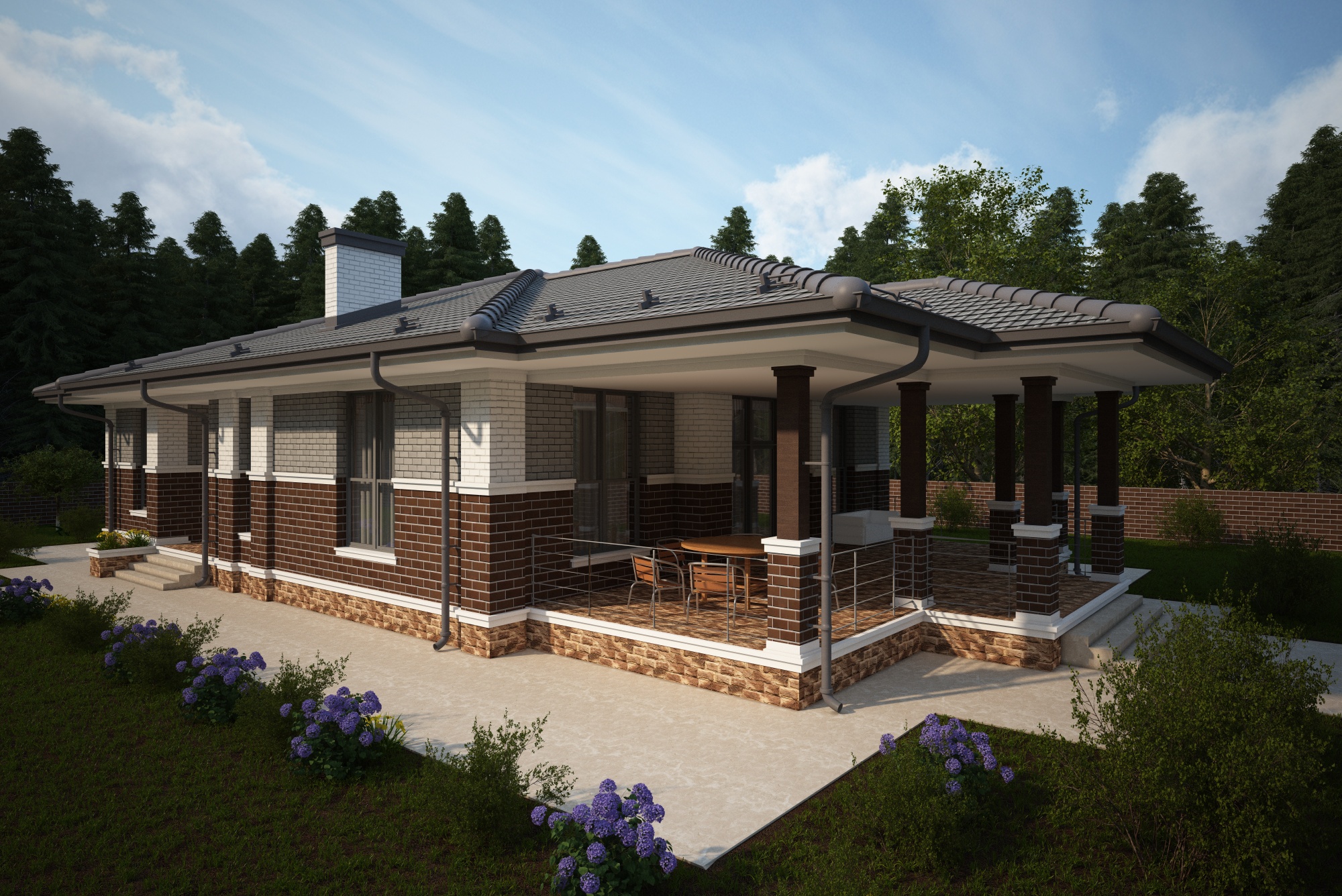 Фасад - облицовочный кирпич "баварская кладка" и "шоколад".