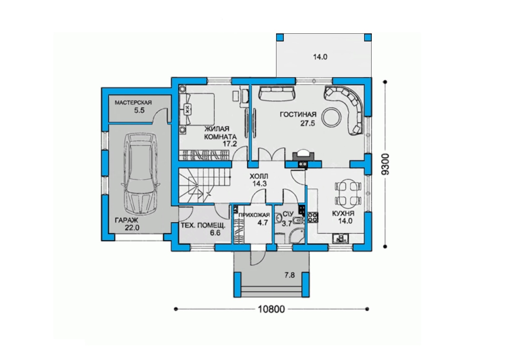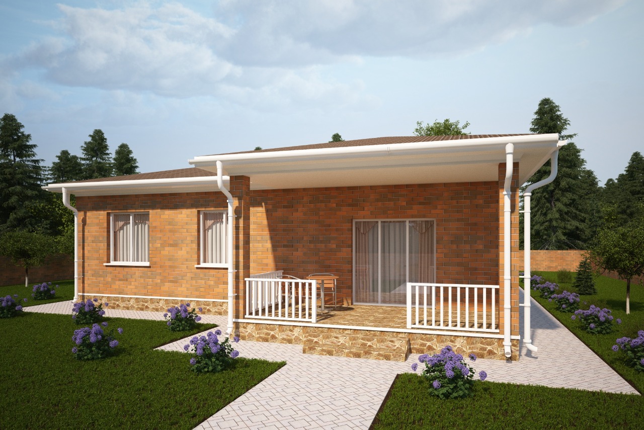 Проект дома с террасой для семьи с 1-2 детьми. Есть возможность в реализации гаража по размерам террасы.