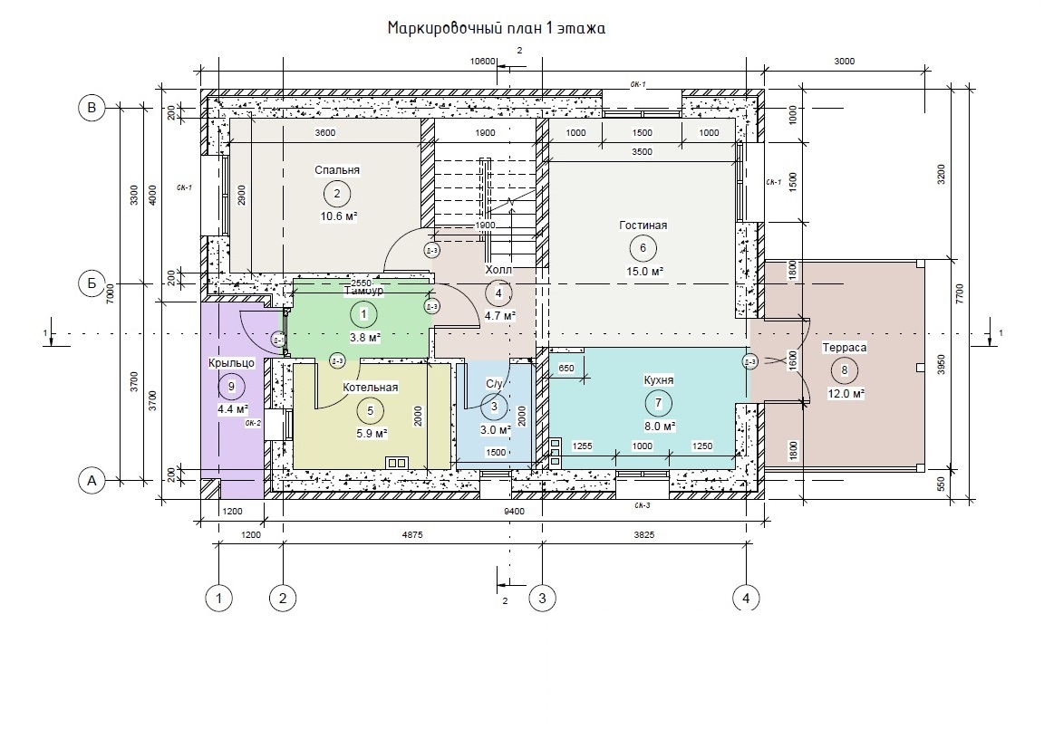 Проект дома состоит из таких разделов:
